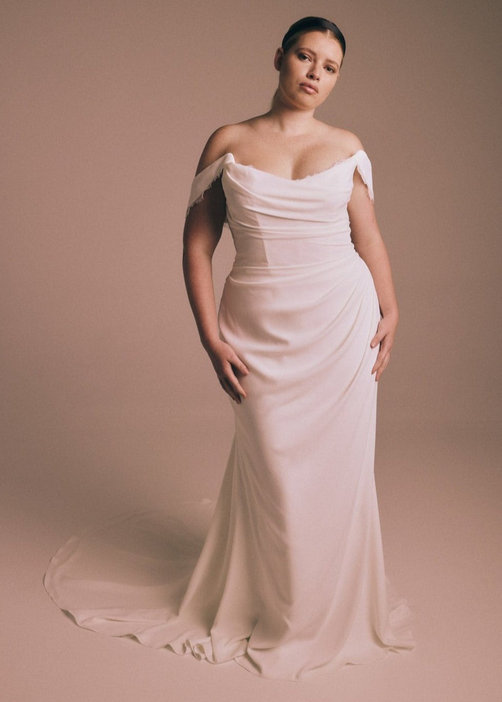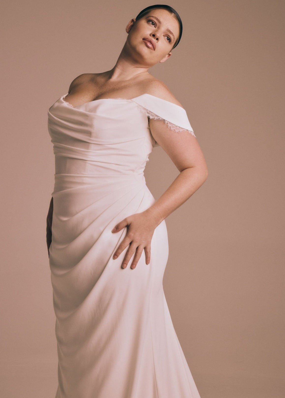 **HIP NOTE - The skirt is intended to fit snugly over the hip, consider sizing up in the hip if the bride does not want the curved joinline to be emphasized under the butt.